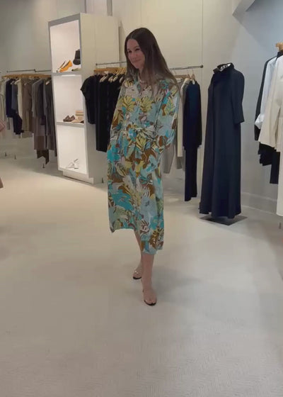 Effortlessly chic and ready for anything, this Italian-crafted midi dress brings floral flair to your everyday rotation. The crisp point collar and button-front design keep things polished, while the removable self-tie sash lets you switch up your silhouette on a whim. Breezy elbow-length sleeves and luxurious viscose fabric make it your new go-to for warm-weather dressing.