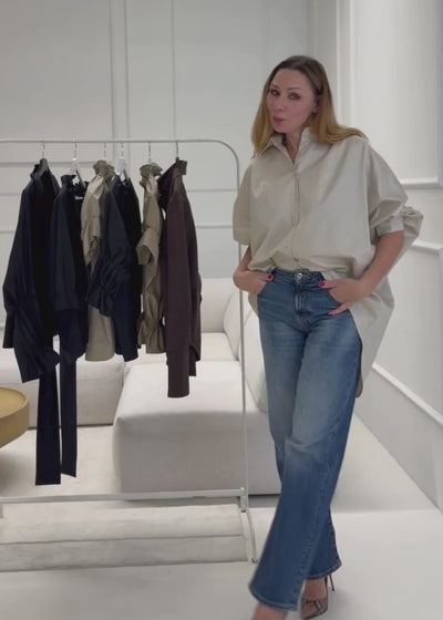 The Norma Shirt is that one oversized piece you put on… and instantly feel effortless. Relaxed, sculptural, and beautifully dramatic, it’s crafted from our signature crisp cotton poplin that holds shape while feeling feather-light on the skin. The silhouette is intentionally voluminous — soft curves, dropped shoulders, and a rounded hem that creates that unmistakable Monica Nera cocoon effect. It moves with you, frames your body without ever overwhelming it, and brings a touch of quiet luxury to any look.