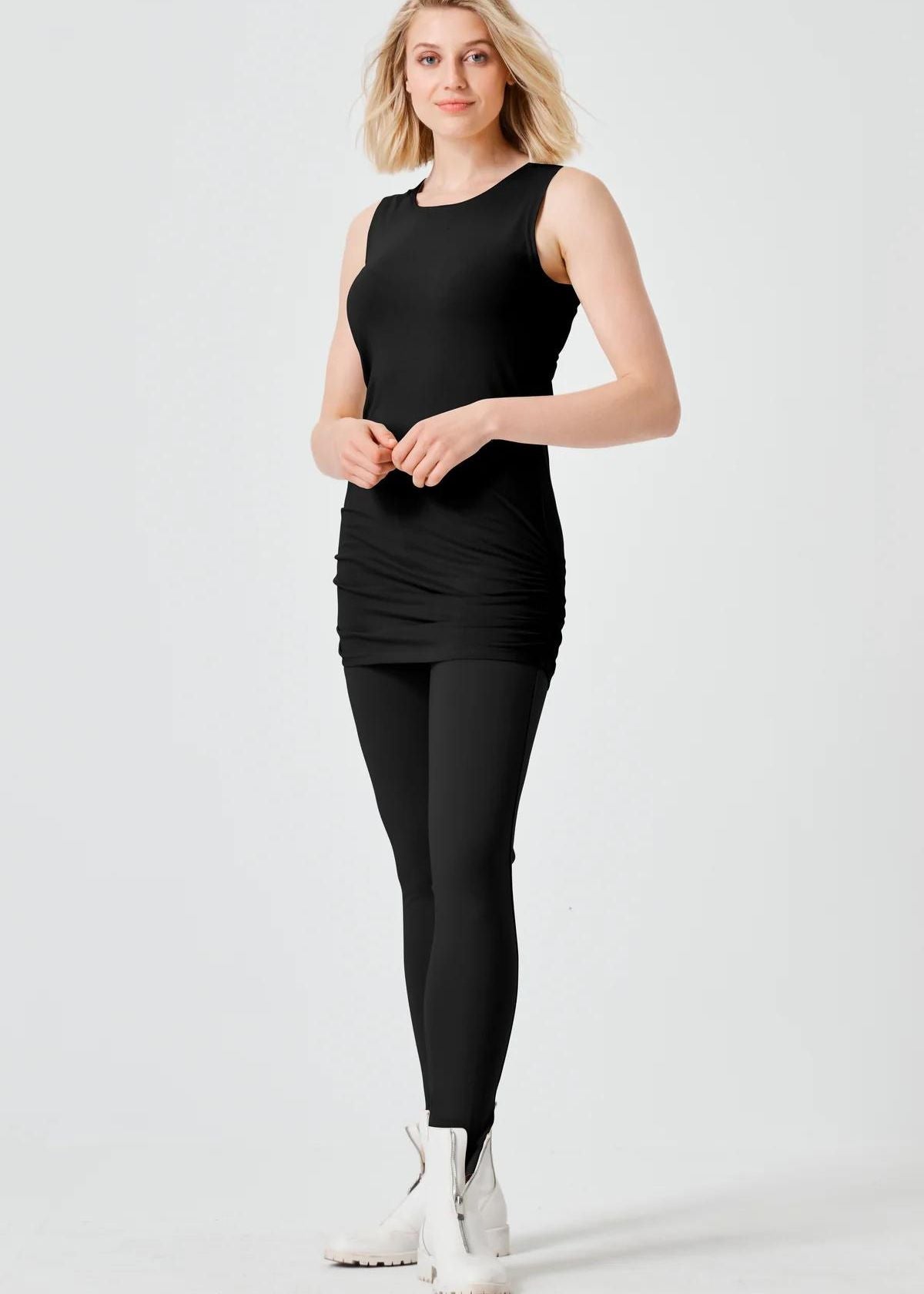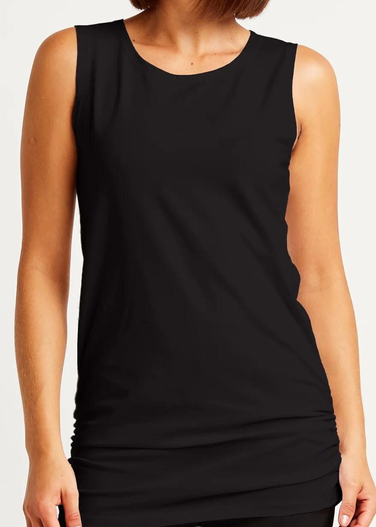 One of the stars in PLANET’S layering system. This body is more fitted than Planet's other tank style (shirttail). The side ruches give you flexibility when styling your favorite look. Cotton/Lycra is a great warmer climate weight. It’s a brand staple.