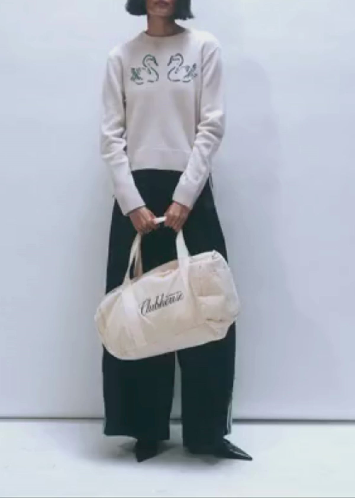A trend-forward knit with a handcrafted finish. Crafted from a soft wool-cashmere blend, this straight-fit silhouette is accented with a custom-drawn, hand-embroidered swan motif, bringing subtle artistry to an everyday classic.
